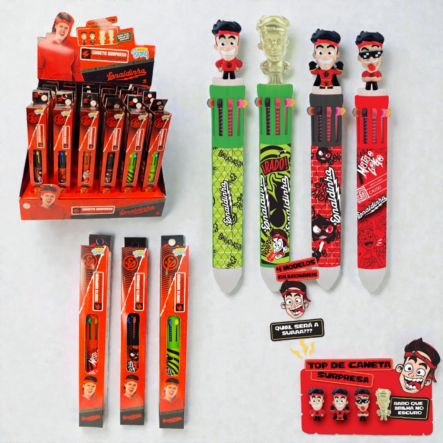 Caneta Gel 10 Em 1 Enaldinho Escolar Infantil Modelo Surpresa Boneco Brinquedos Menino