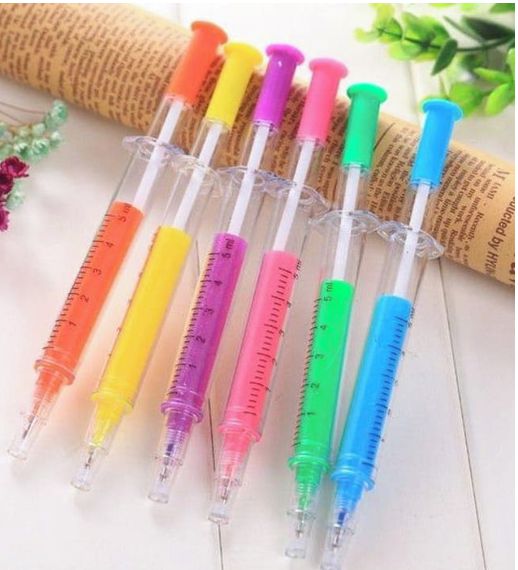 Caneta gel seringa, Ponta 0,5 gel , cor da tinta na cor preta ( essa caneta é somente caneta gel) , não é marca texto!