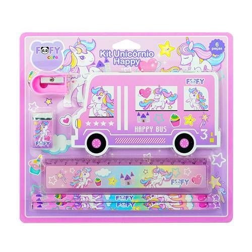 O Kit Happy da FOFY é ideal para você criar, colorir e anotar suas memórias. Contém 6 peças: 1 caderninho, 2 lápis, 1 borracha, 1 apontador e 1 régua.