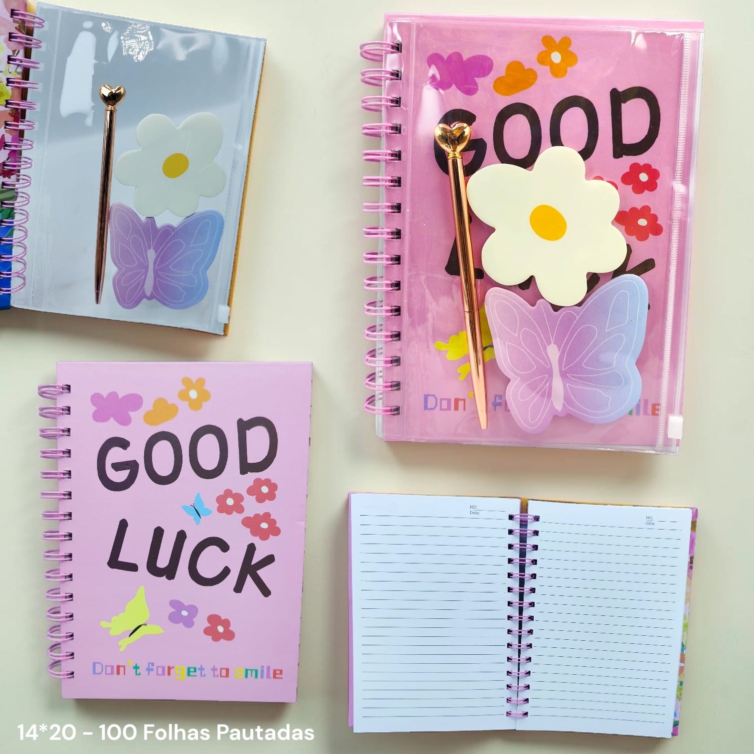 KIT PRESENTE CADERNO/ POST IT E CANETA GOOD LUCK