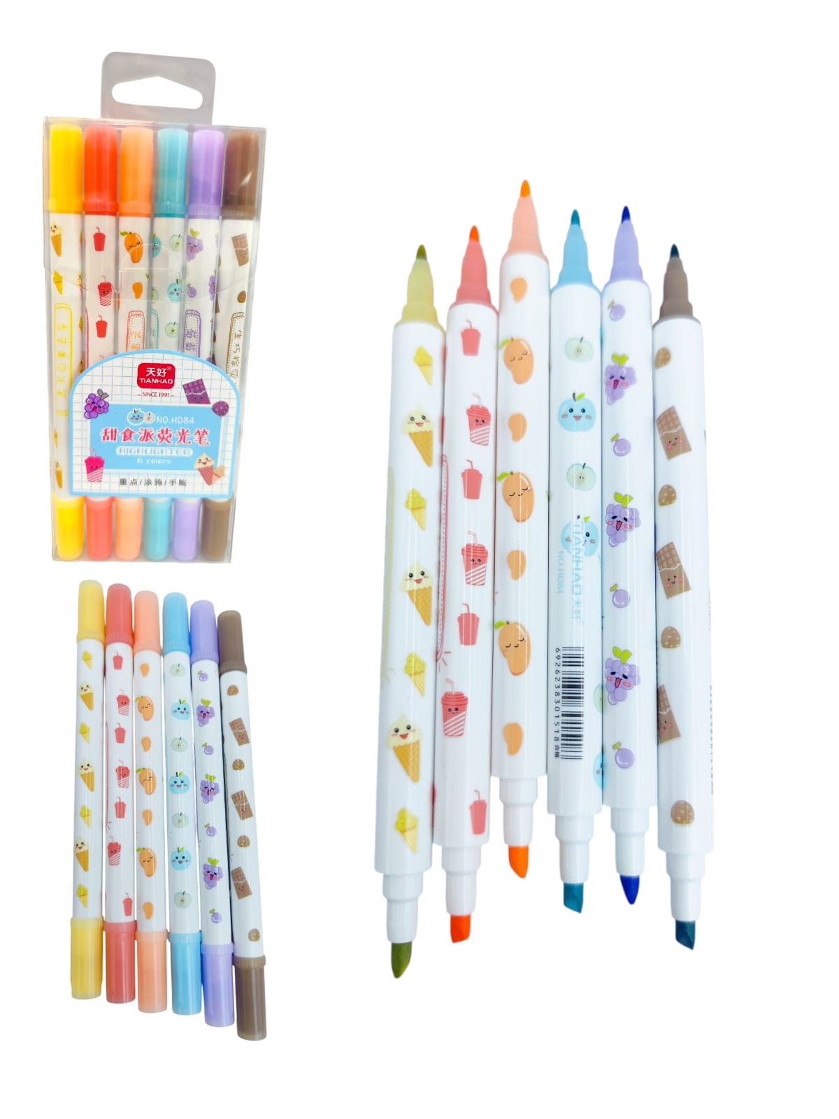 MARCA TEXTO 6 CORES DUAS PONTAS E PERFUMADO LINDO DEMAIS