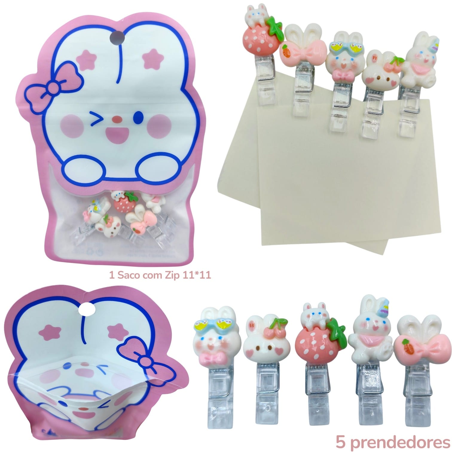 MINI PRENDEDORES COELHO - ZIP COM 5 PEÇAS