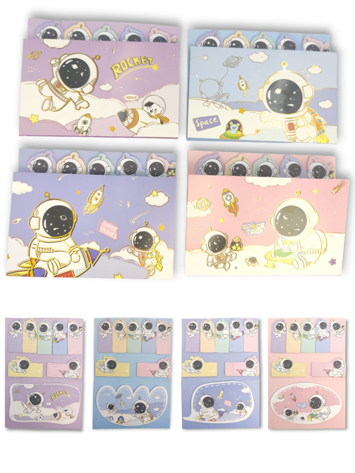 ELE É UM CADERNINHO QUE ABERTO CONTEM 8 MODELOS DE POST IT COM 15 FLS CADA