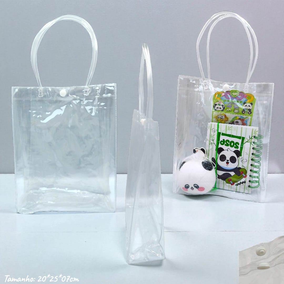 SACOLA PARA EMBALAGEM PRESENTEAVEL TRANSPARENTE COM BOTÃO ( PLASTICO MOLINHO )20 x 25 x 7cm) UN