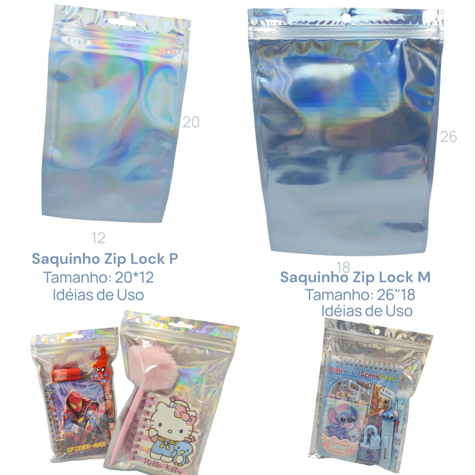 SAQUINHO ZIP HOLOGRAFICO - OTIMO PARA KITS